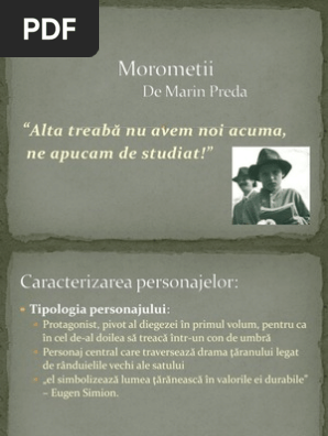 Romanul Realist De Tip Obiectiv Postbelic Morometii Marin Preda