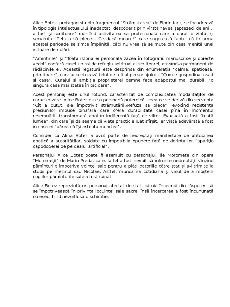 Caracterizarea Personajului Alice Botez Din Strămutarea De Florin Iaru