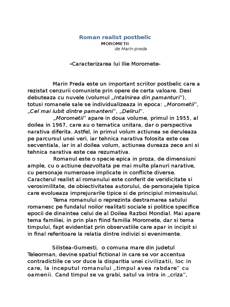 Doc Caracterizare Ilie Moromete Morometii De Marin Preda Elena Grigorescu Academia Edu