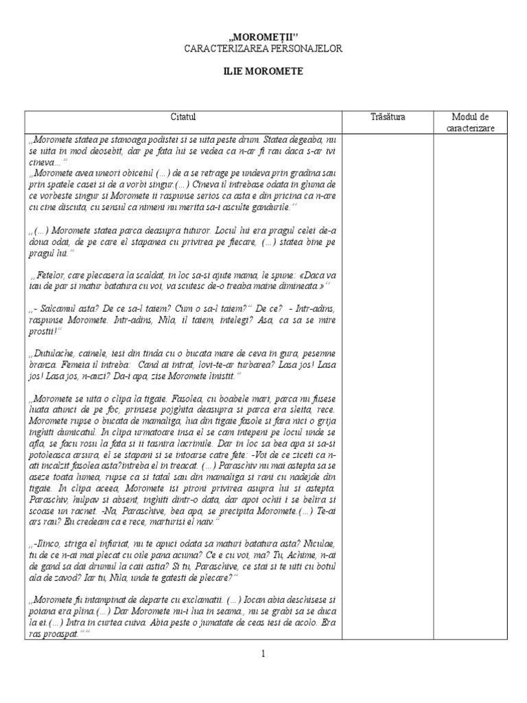 Doc Caracterizare Ilie Moromete Radu Carata Academia Edu