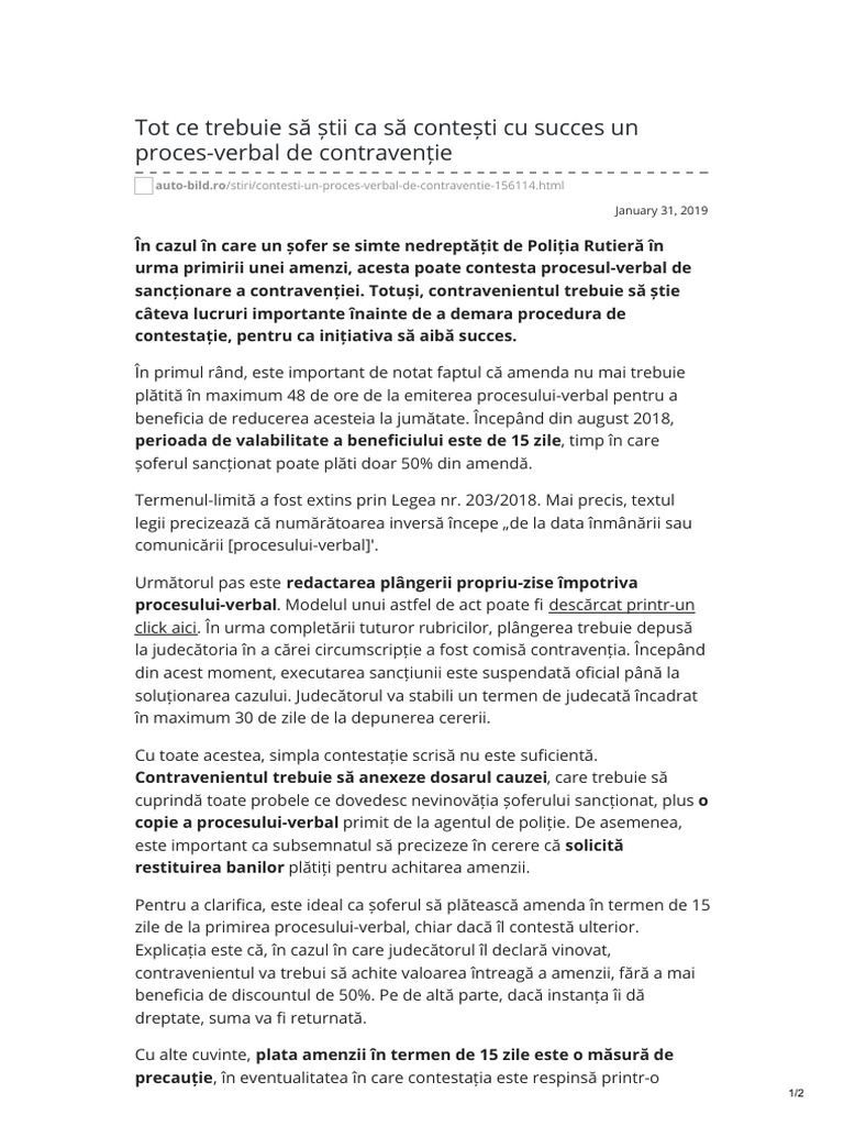 Model De Contestatie Proces Verbal Pentru Amenzi