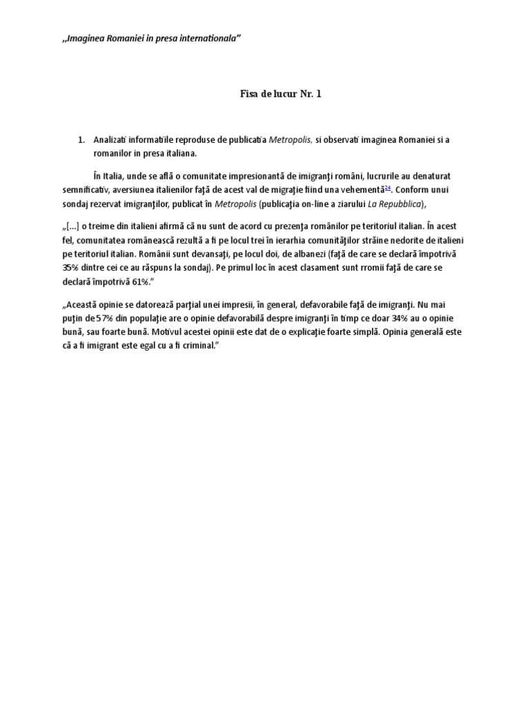 Imaginea Romaniei In Presa Internationala Cls 11 Fise De Lucru Doc