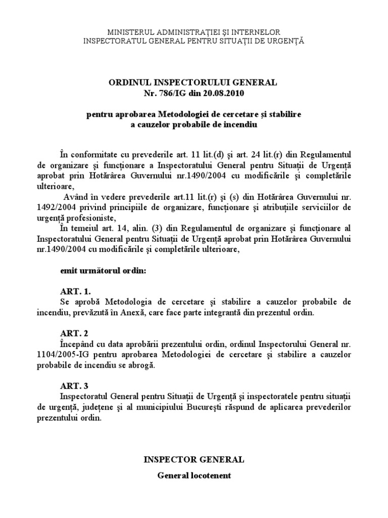 Oig 786 Ig Cercetare Cauze Incendiu Aprobat
