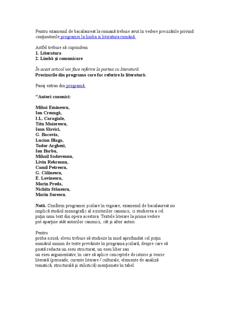Programa Nouă Bacalaureat 2020 Limba și Literatura Romană Emaramures