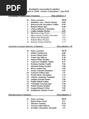 Rezultatele Concursului De Admitere La Studii Postuniversitare Prin Rezidenţiat Universitatea De Stat De Medicină și Farmacie Nicolae Testimițeanu Din Republica Moldova